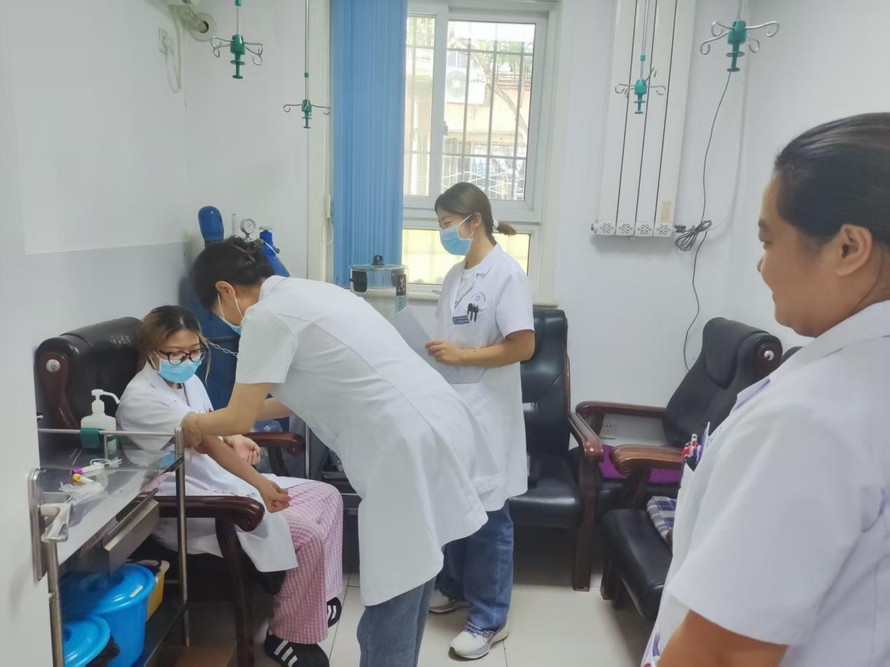 练兵内容从“实用”出发,紧贴基层诊疗需求。基础技能上,静脉穿刺、无菌操作、心肺复苏等“看家本领”反复练,每个人都要过“计时关”“精准关”;专科知识上,针对高血压、糖尿病等慢性病管理,从用药调整到饮食指导,每一个细节都反复推敲;应急处置中,模拟过敏性休克、心脑血管急症等场景,医护、药房、检验等岗位联动演练,把“治疗室”当“战场”,在实战化训练中磨合流程、提升效率。